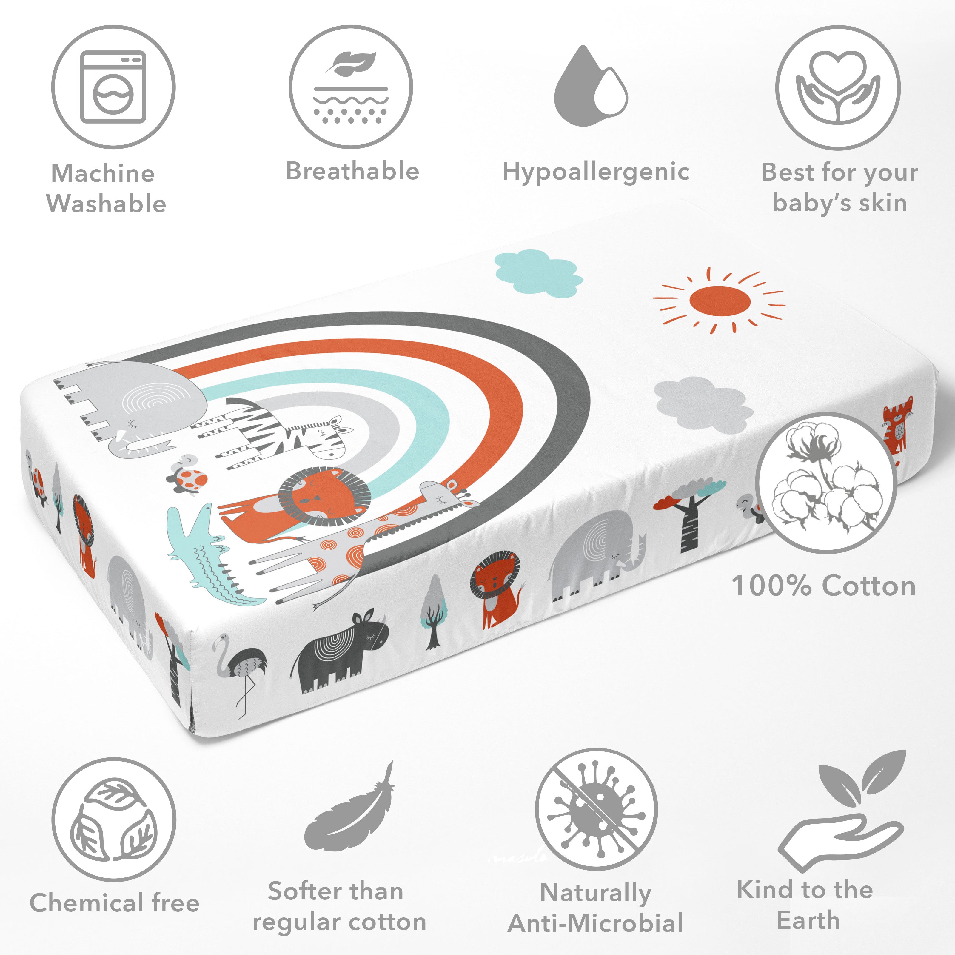 • 100% Premium Cotton Percale: Crafted from high-quality, breathable cotton, providing a smooth, crisp feel that’s gentle on your baby’s delicate skin.