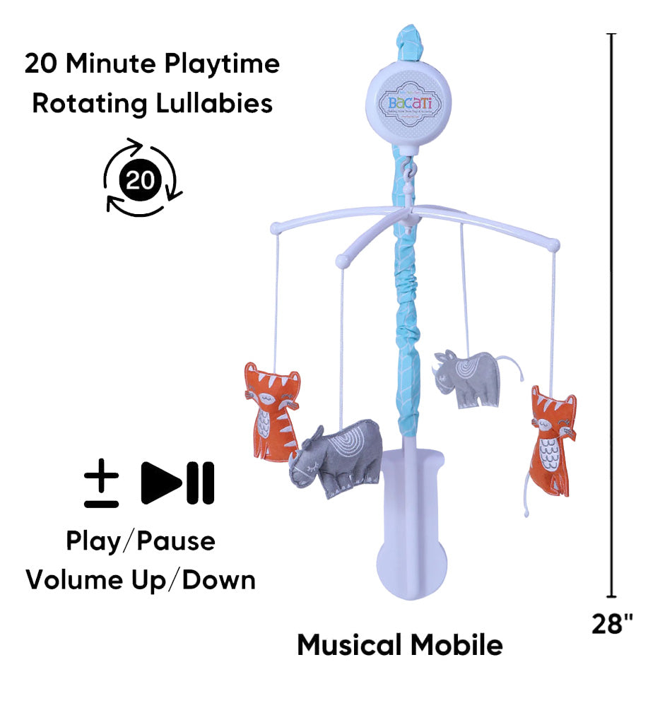 Musical Mobile: Saving the best for last, our redesigned mobile features a various soothing lullaby. It comes with Music Box with 10 different tunes with tune selector besides power switch so you can play or shut off the music. You can also adjust the volume to your child’s liking. Requires 2 AA Batteries not included.