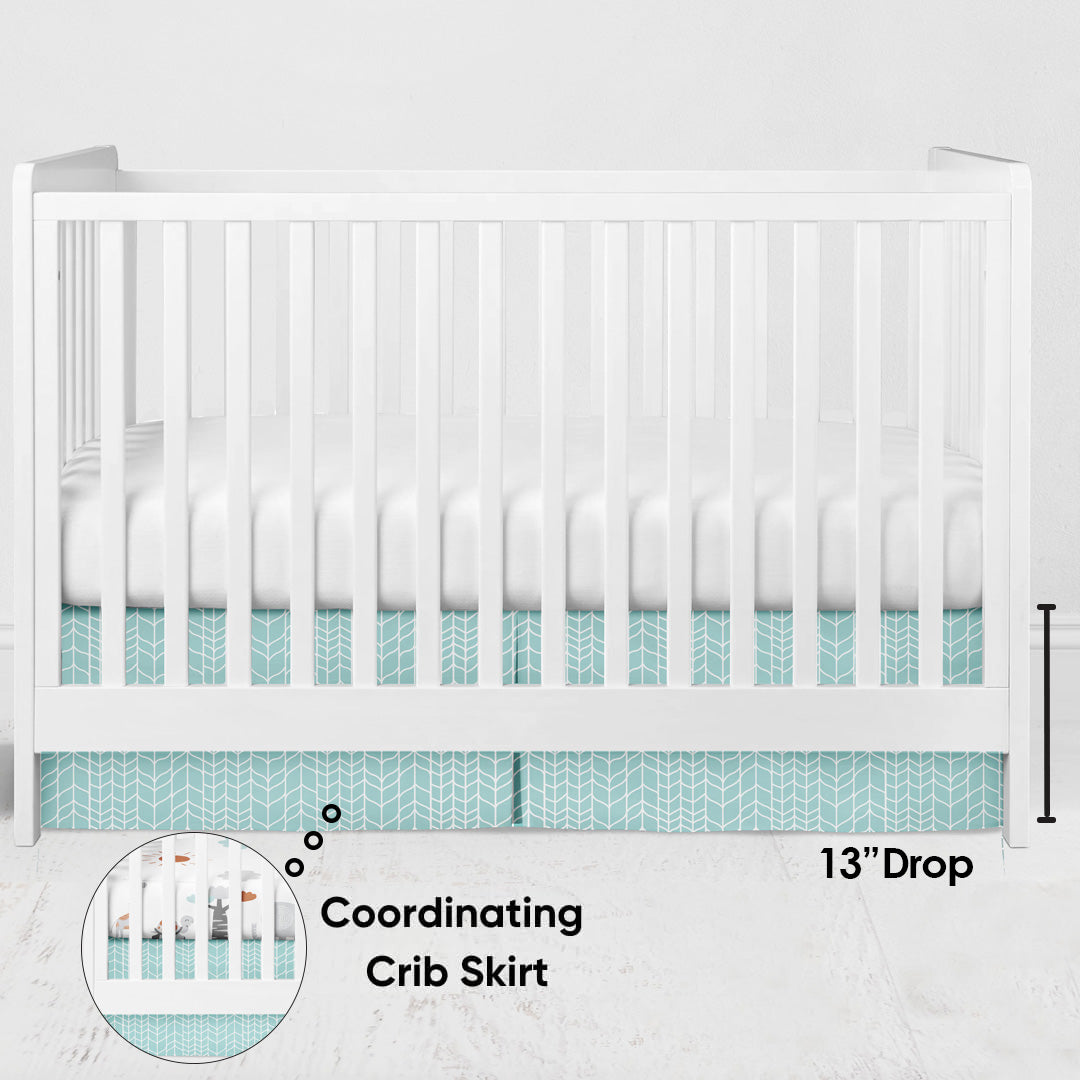 Crib Skirt / Bed Dust Ruffle: Adding a pop of color to your nursery, the crib skirt features simple yet classic print. It is perfect for a US standard sized crib. Dimensions: 52 x 27 inches Deck with 13 inches Drop