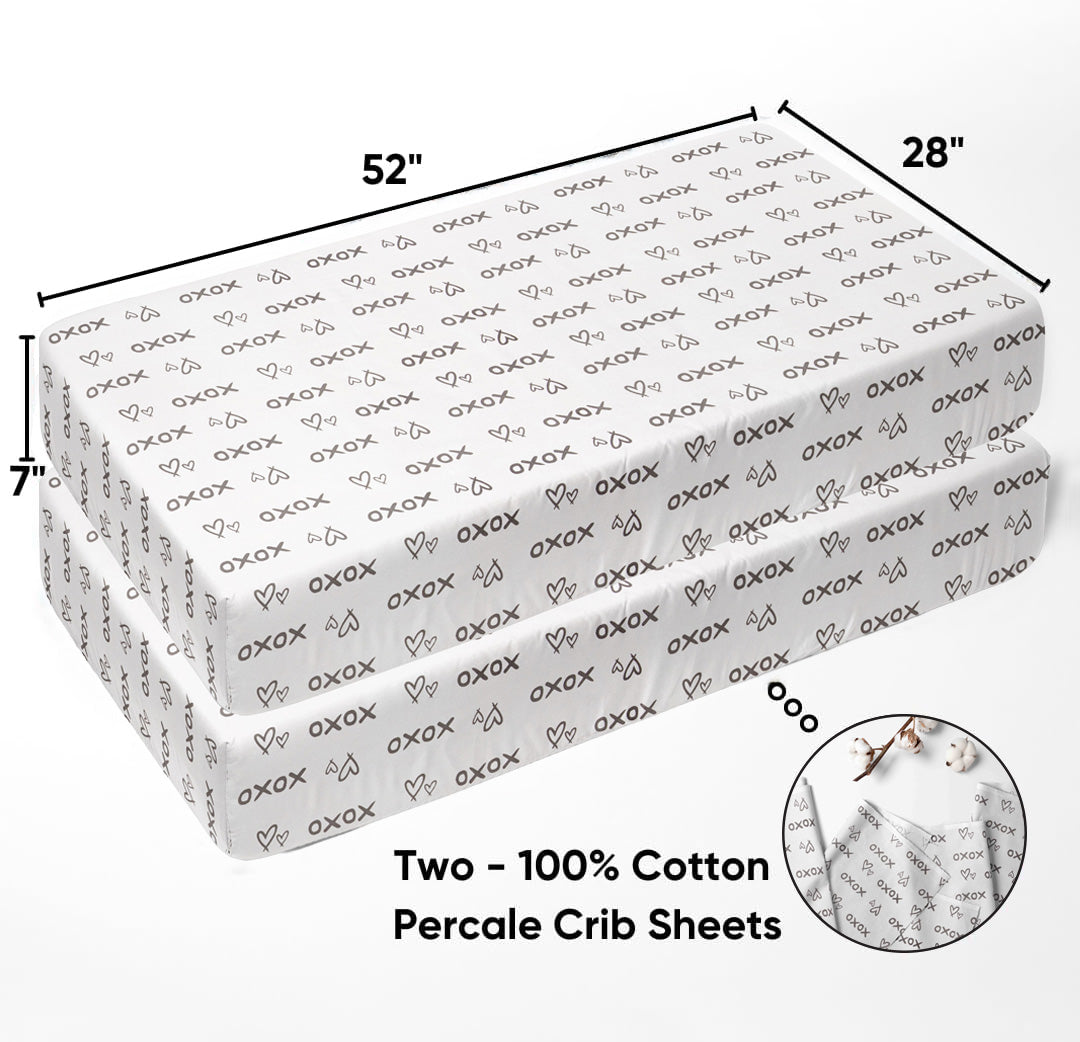 The 10 Piece Crib Bedding Set includes: a reversible crib comforter, 2 fitted crib sheet, crib skirt, diaper caddy, window valance, musical mobile, & 3-piece wall hangings. The reversible comforter (43” x 33”) includes our signature Bacati themes. The comforter is 100% cotton percale and is filled with a polyester batting making it about 1” thick. You’ll also get a set of our gorgeous 3-piece wall hangings (10” x 10”)! Included is TWO 100% cotton breathable fitted crib sheet (53” x 28” x 6”) along with a nursery window valance (54” x 15” drop fit for a 3” rod pocket and has a 1” header). As a perfect addition to the set, a 4-sided crib skirt is included (52” x 27”). The diaper stacker (20” x 12” x 8”) has a capacity to hold 24-36 newborn diapers. Top all that off with a 4-toy, electronically controlled musical mobile, & your Bacati themed nursery is pretty much complete! Finish out your beautiful nursery theme with additional accessories sold separately, such as an extra fitted sheet, changing pad cover, activity gym, storage solutions, & much more!