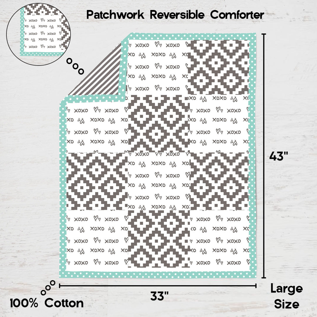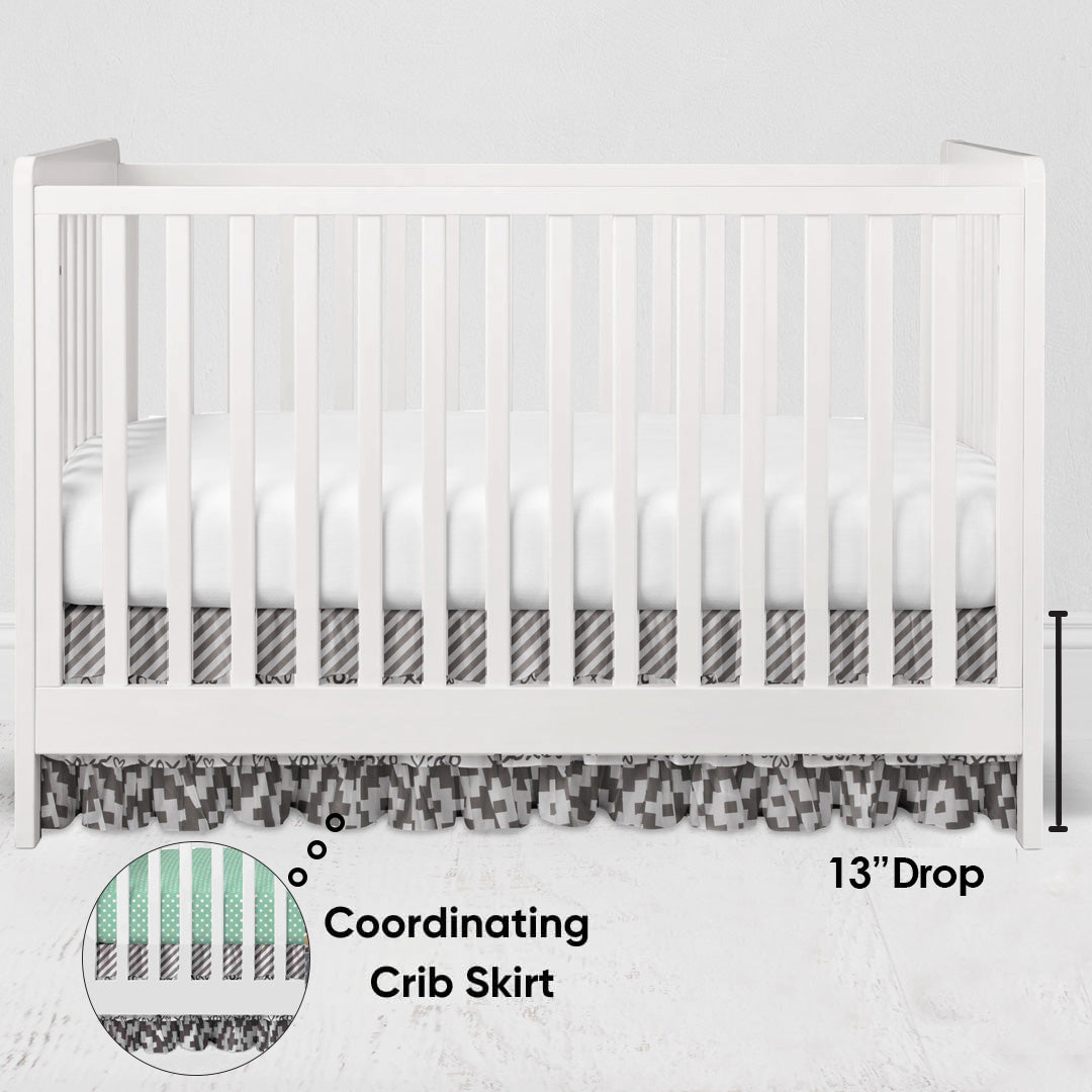Bacati - Love Aztec 4-Piece Crib Bedding Set with Diaper Stacker - Grey/Mint Unisex