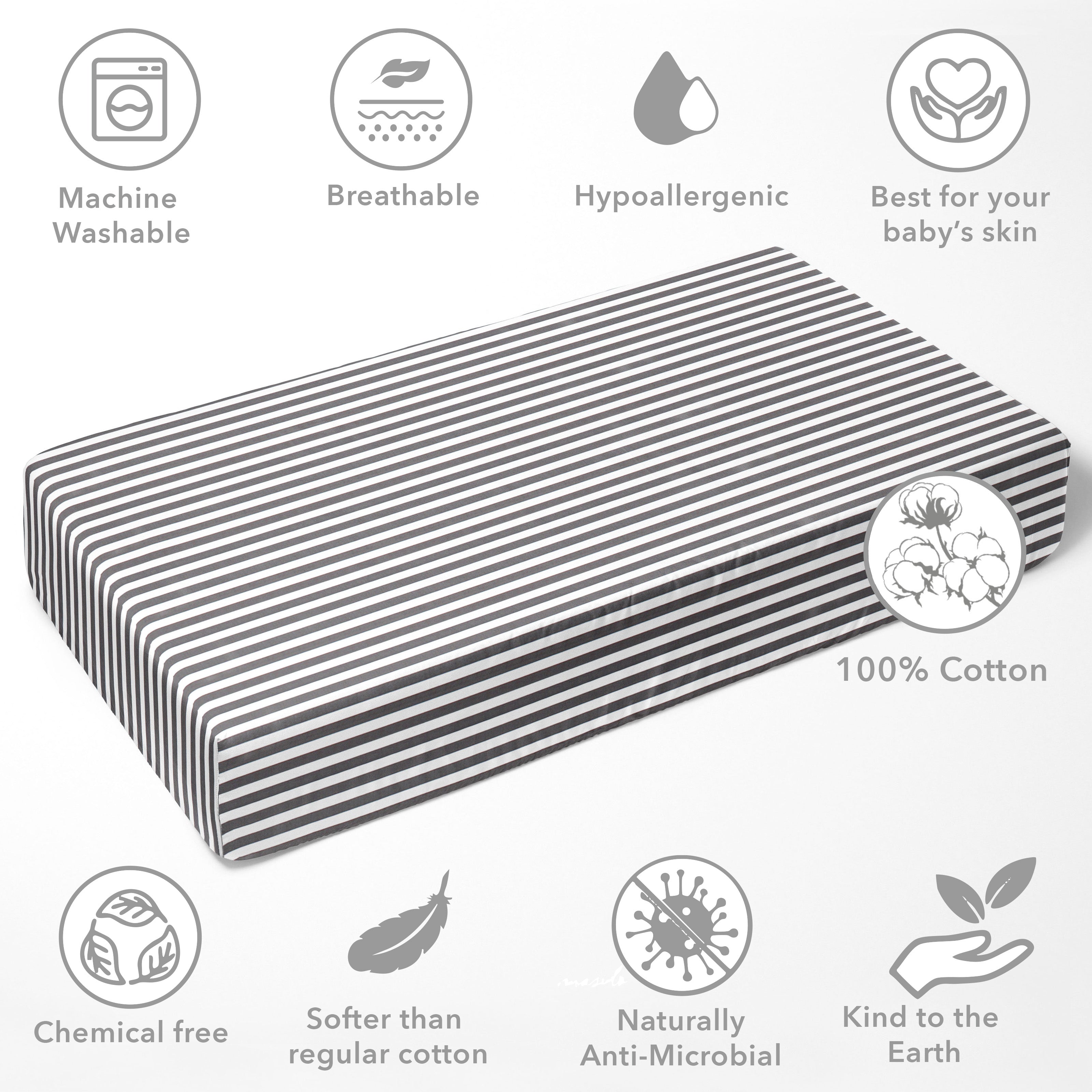 • 100% Premium Cotton Percale: Crafted from high-quality, breathable cotton, providing a smooth, crisp feel that’s gentle on your baby’s delicate skin.