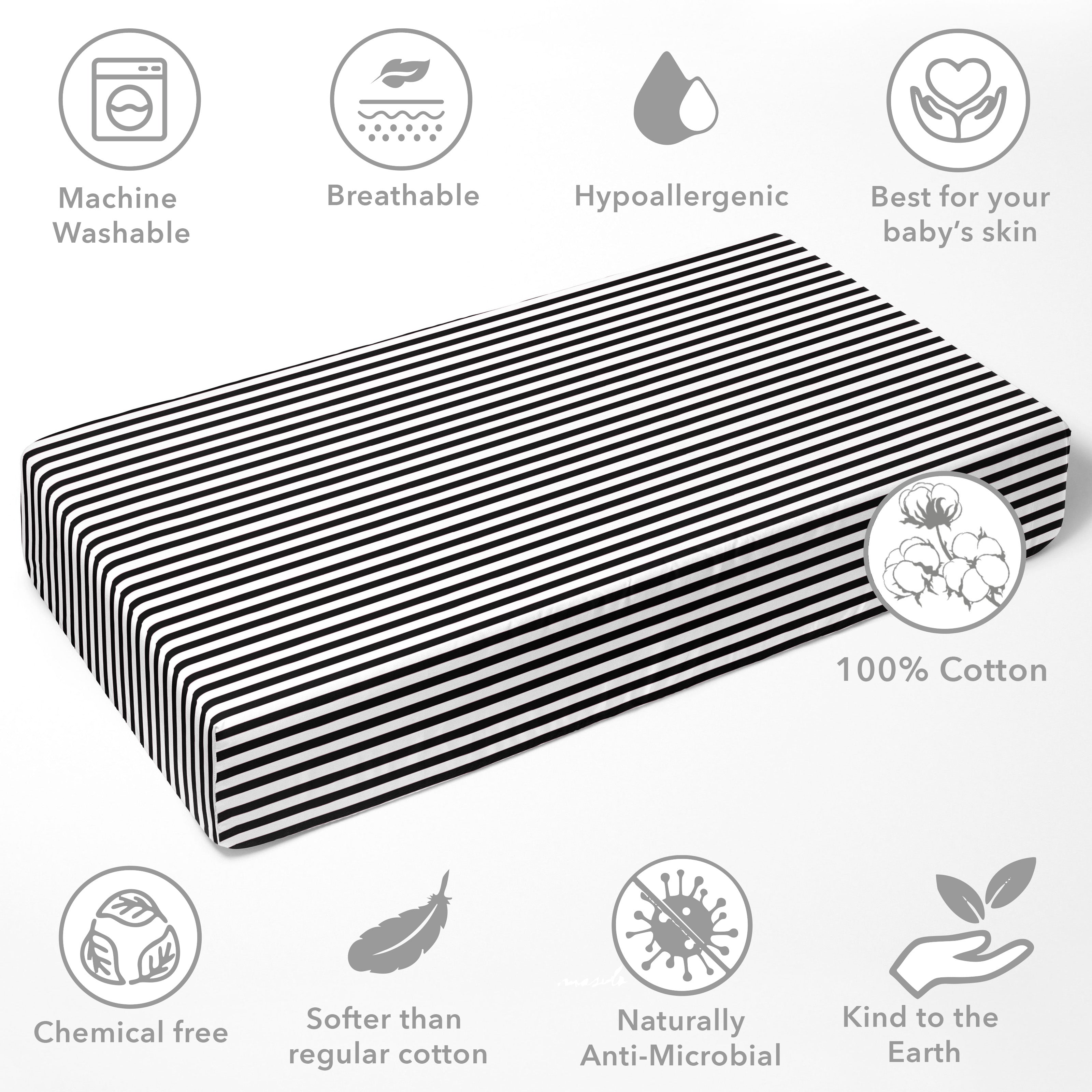 • 100% Premium Cotton Percale: Crafted from high-quality, breathable cotton, providing a smooth, crisp feel that’s gentle on your baby’s delicate skin.