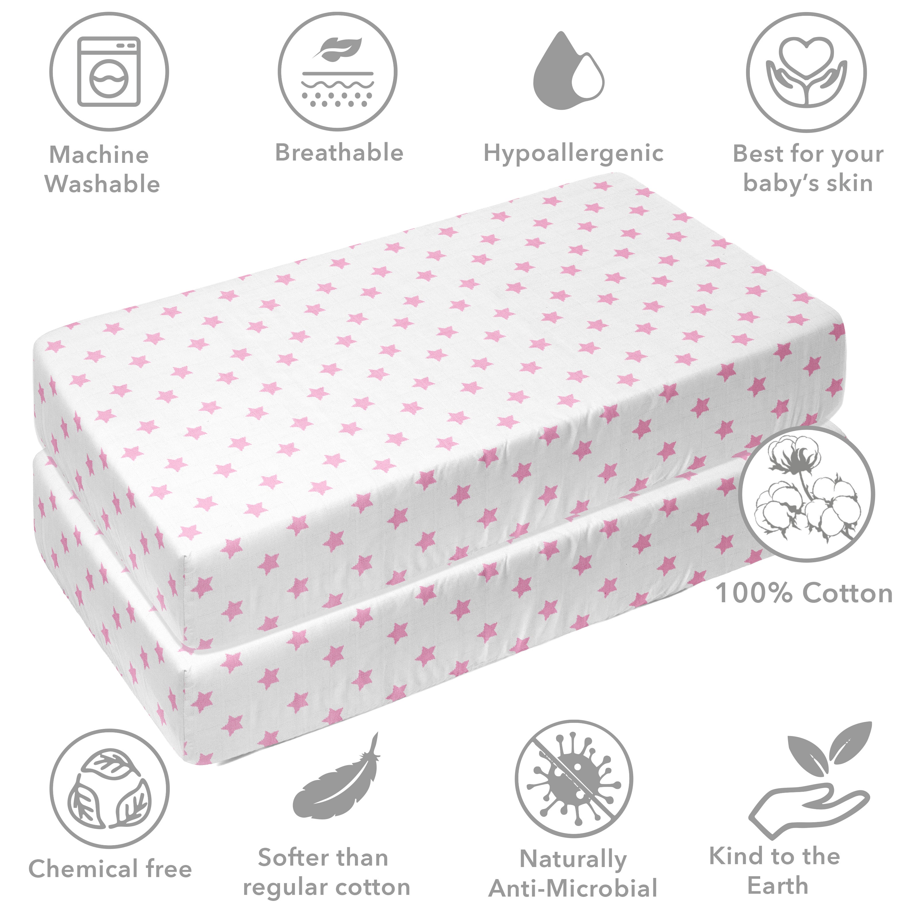 Stars Girls Muslin Crib Fitted Sheet Pink