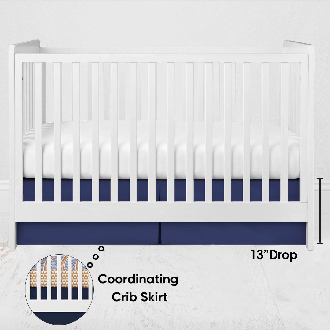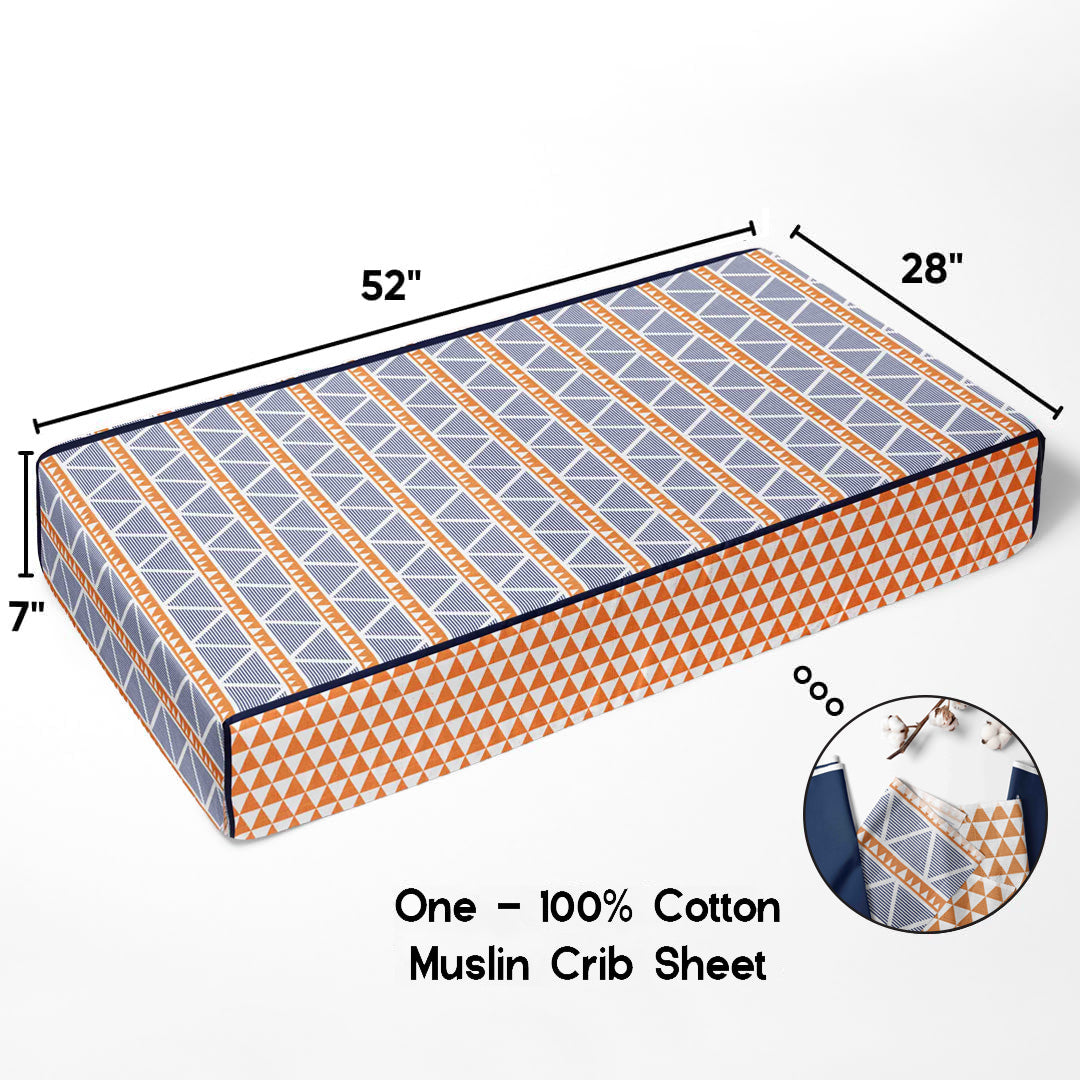 This Bacati 10-piece muslin crib bedding set includes everything you need to make your little one's crib comfortable and stylish. To start off, there is a reversible muslin blanket (43” x 33”), made of 4 layers of muslin, perfect for keeping your baby warm and cozy. Being reversible, it has two different designs, perfect for choosing which stylish and modern look you want today! Also included is a fitted crib sheet (53” x 28” x 6”) made from the same soft and breathable muslin material. The elasticized corners make it easy to put on and take off, while also keeping it in place and preventing it from slipping. and the sheet is machine washable for easy care. An excellent addition to your crib, is this beautiful 100% cotton percale crib skirt (52” x 27”)! The dust ruffle easily fits over the sides of the crib, adding a finishing touch to your baby's nursery decor. The 100% cotton percale reversible crib rail guard (52” x 14”) is the perfect teething protector for your little one’s crib, being padded on the inside with polyester batting. Being reversible, you’ll have the option to display two of our signature Bacati prints! To round out the set, are 4 muslin swaddling blankets (45” x 45”). Made from super soft, breathable muslin material, these swaddles are perfect for swaddling, nursing & cuddle time. You’ll also get a set of our gorgeous 3-piece wall hangings (10” x 10”)!